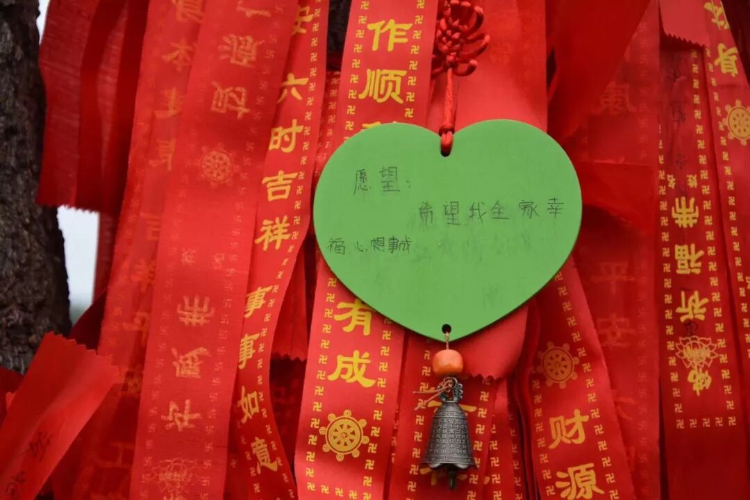 新年将近,人们在这一年的终结和开始之间,把对新年的祝福写在福卡上,希望得到神明庇佑的一种祈求赐福方式。将福带发给对新年寄予希望的人们,挂在大树上,红色覆盖树干随风飘荡,红色的喜庆与希望让冬日也温暖起来。
